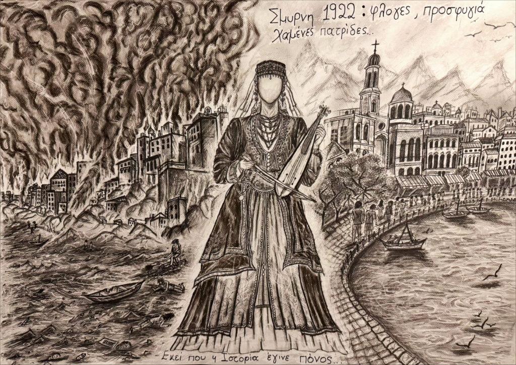 Η Λυδία Ευαγγελούδη είναι αυτοδίδακτη και αξιοποιώντας το ταλέντο και την φαντασία της κατάφερε να αναδειχθεί πρώτη στον διαγωνισμό αφίσας, αποτυπώνοντας με μοναδικό τρόπο τις δοκιμασίες, τον πόνο και τους διωγμούς του Ελληνισμού της Μικράς Ασίας και του Πόντου.