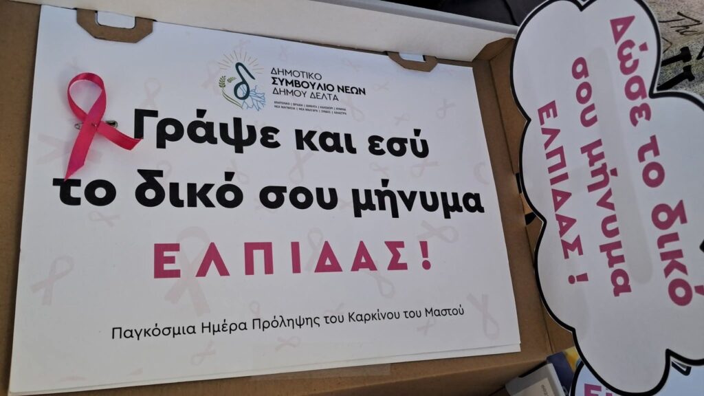 Σήμερα βρεθήκαμε όλοι μαζί στα Διαβατά, στη δράση που διοργάνωσε το Δημοτικό Συμβούλιο Νέων Δήμου Δέλτα, στέλνοντας ένα δυνατό μήνυμα ελπίδας συμβάλλοντας στην ενημέρωση και την πρόληψη για τον καρκίνο του μαστού.