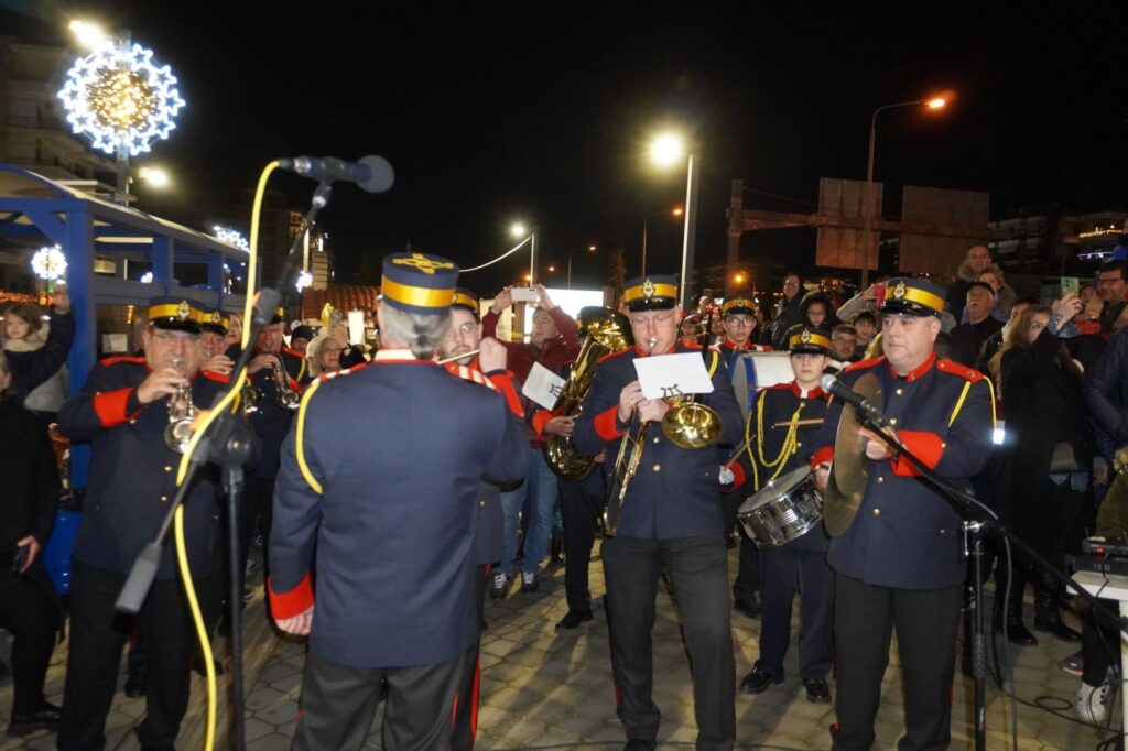 Αμέσως μετά, η φιλαρμονική έπαιξε τα κάλαντα των Χριστουγέννων και η γιορτή συνεχίστηκε μέχρι τα μεσάνυχτα.