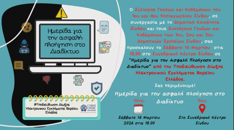Ημερίδα για την ασφαλή πλοήγηση στο διαδίκτυο σήμερα στη Σίνδο