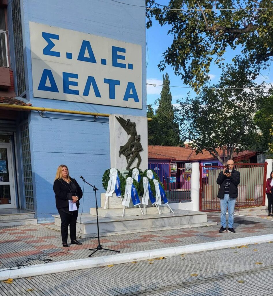 Η δήμαρχος Δέλτα, Γερακίνα Μπισμπινά, παρευρέθηκε στις εκδηλώσεις που πραγματοποιήθηκαν στο Ανατολικό, όπου κατέθεσε στεφάνι στο Ηρώο της κοινότητας, τιμώντας τη μνήμη των αγωνιστών του Μακεδονικού Αγώνα.
