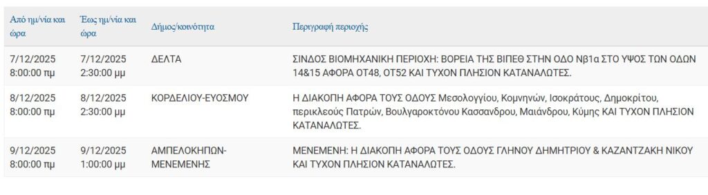 Αναλυτικά οι περιοχές που θα επηρεαστούν και οι ώρες κατά τις οποίες θα υπάρξουν προβλήματα ηλεκτροδότησης: